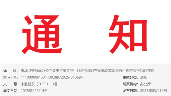 各省、自治区、直辖市和新疆生产建设兵团市场监管局(厅、委): 近年来,宣称“治痛风”“降尿酸”功能食品非法添加案件不断增...