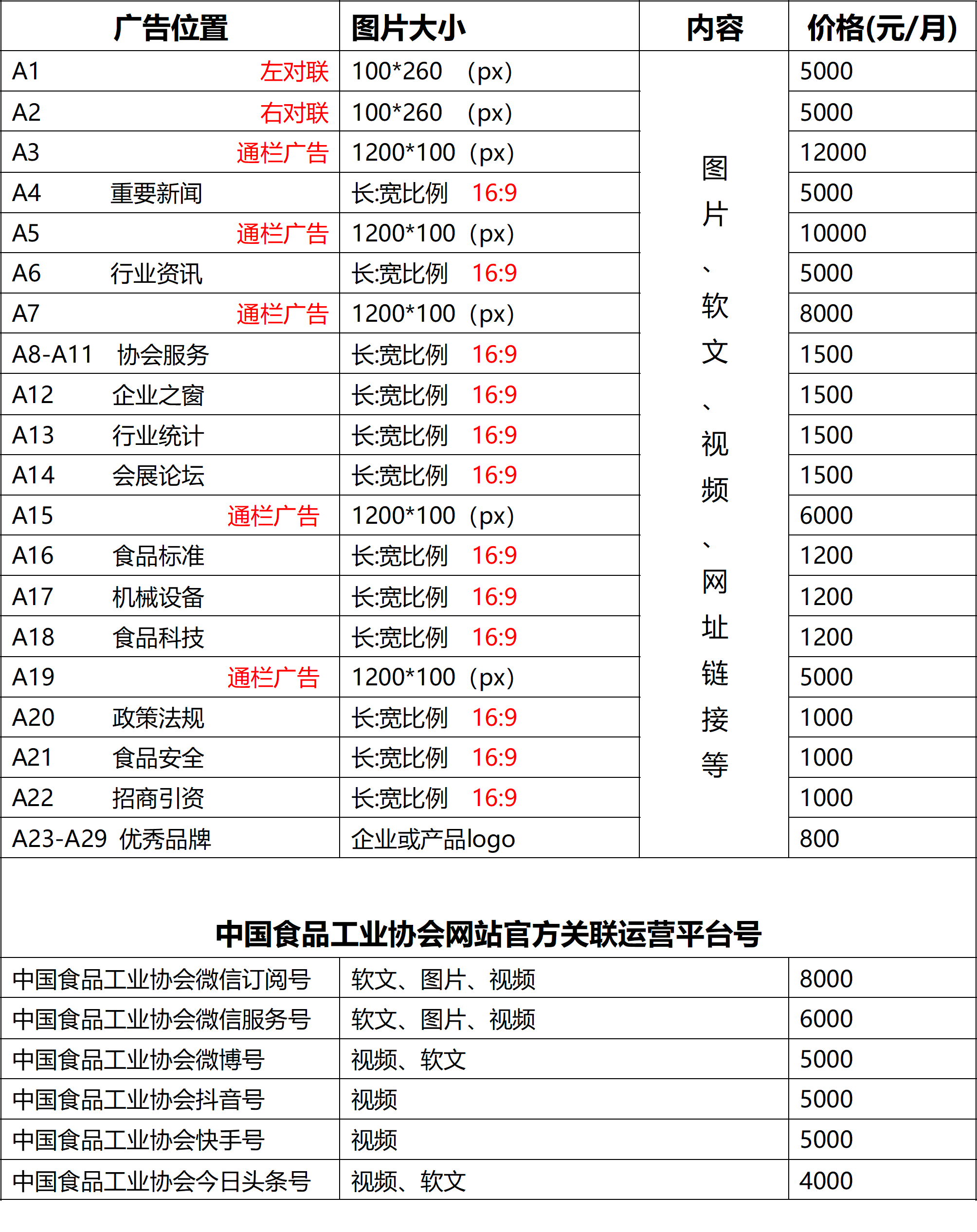 适合投放广告内容:优秀食品企事业单位的宣传,食用产品生产、营销、储藏、物流运输,食品的展览展示,华体会体育娱乐 ,食品检测仪器、设备、试剂等,食品添加剂,食品行业机械设备,其它与食品技术、食品质量相关的营销追溯产品等。